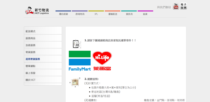 費用計算也是以長寬高合計的尺寸為基準,然後再加入性質與地區計費,另有便利箱及超值袋。
