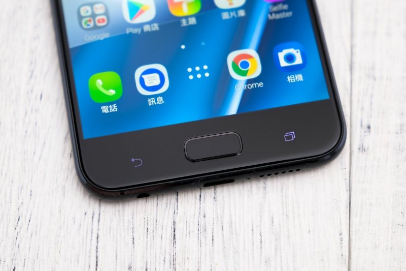 下方採用實體 Home 鍵以及觸控式功能鍵,Home 鍵的部份同時具備指紋辨識,且改為反饋式 Home 鍵,變成不可按壓,當你按下 Home 鍵時會反饋一個震動感,讓你感覺有按下去。