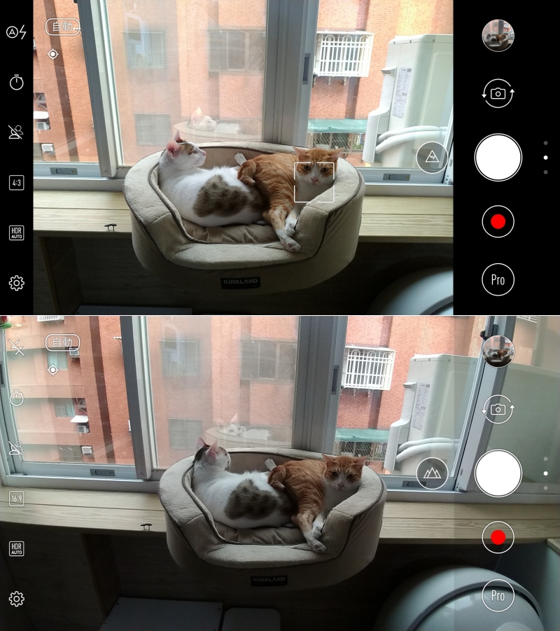 而在拍攝時,會發現畫面上快門按鍵的左邊有個小山圖示,按一下則會切換成三座山的圖示,記得前面阿湯有提到這次的 ZenFone 4 是搭載雙鏡頭,而其中一顆是採用 120 度廣角鏡頭,這個小圖示就是用來切換鏡頭使用的。