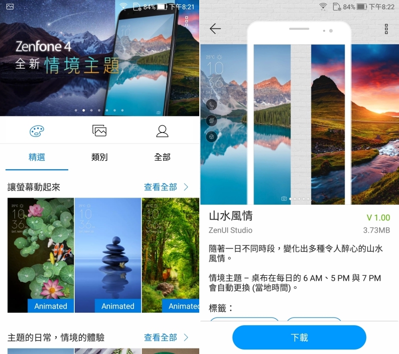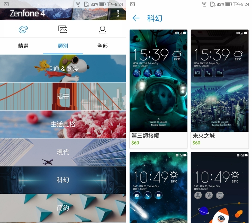 內建的主題商店分類包羅萬象,像是動漫、生活風格、科幻等,免費及付費都有非常多主題可以選擇下載使用。