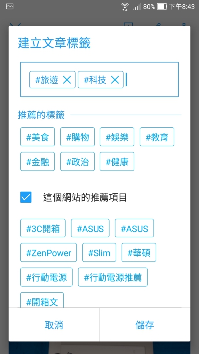 所有的文章在儲存的當下,會依據你的內容自動加入可能標籤,你也可以依自己的分類需求再進行增減,方便之後閱覽想看的文章。