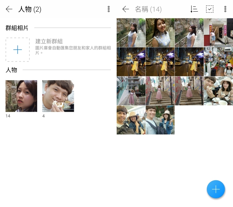 比較特別的是「人物」這項功能,圖片庫會自動辨識你所有的照片,並以人臉進行區分,像阿湯幫老婆拍攝的照片各種角度都有,甚至還有合照,但都完整的辨識成功,並正確的歸類,接下來你可以利用群組功能,例如將家人都放在一塊,或者有家裡有小朋友的,也可以獨立一個群組,未來在瀏覽照片時會更加方便。