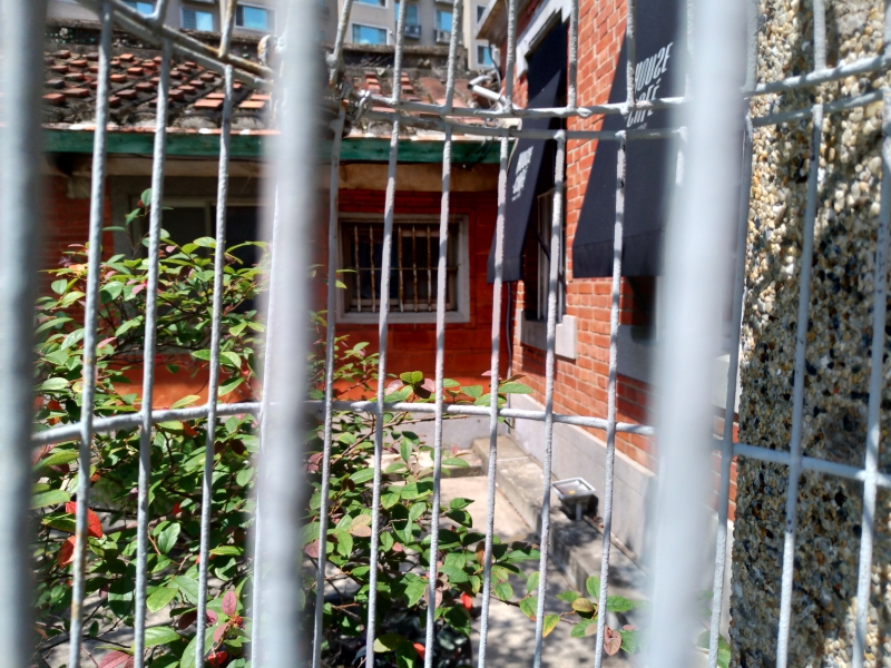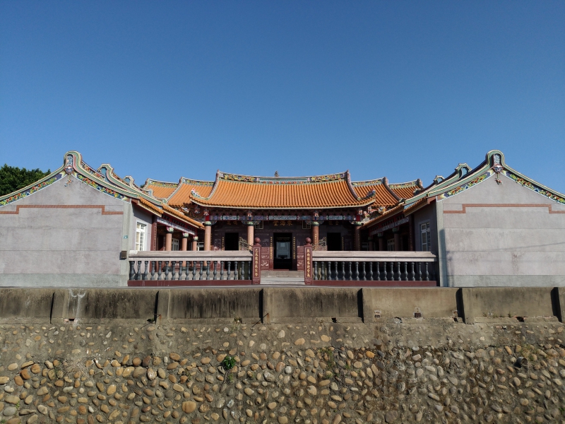 在回家的路上看見了這個三合院的祠堂,覺得這畫面好像是蓋在一座城牆旁一樣,因為像是去日本看那些城池時,這就好像那邊邊的護城河牆一樣,其實相當的特別。