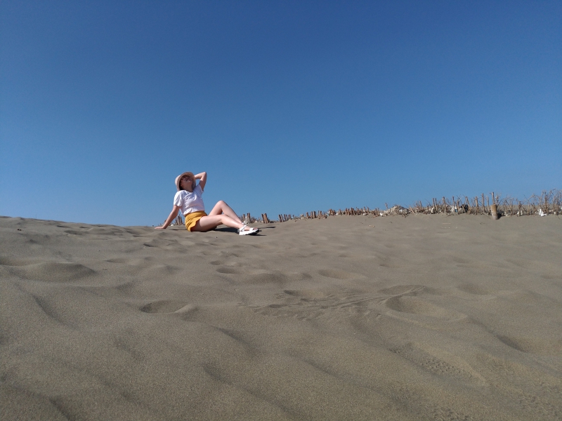 草漯沙丘一走進去就是立刻要爬沙坡上去,非常的吃力,但你會發現用這角度往上拍攝時,就像是在真的沙漠走路一樣。