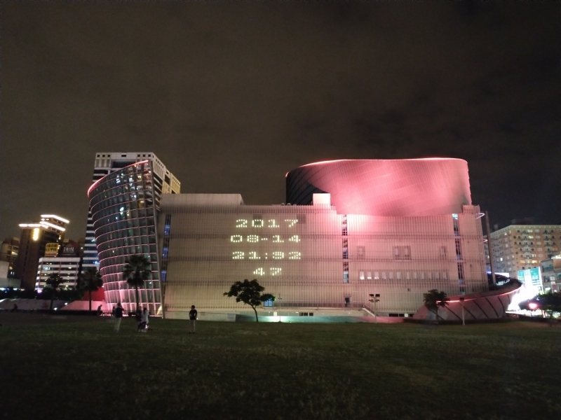 對於低光源夜間的拍攝,表現同樣相同的不錯,這次採用的是 f/1.8 大光圈,感光元件為 1.4μm,對於低光源的表現有很大的助力,阿湯也在桃園藝文展演中心拍攝了一些夜間的實拍提供給大家做為參考。