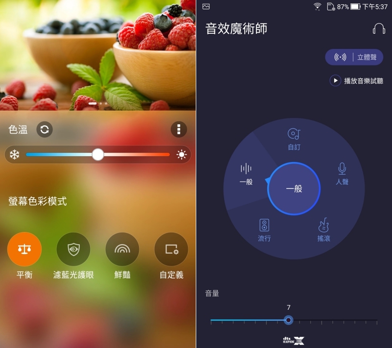 而華碩內建的濾藍光護眼大家可以看下圖比較,左邊是開啟濾藍光後的畫面,右邊為平常的畫面,開啟後畫面其實比較偏向暖色的感覺,稍微黃黃綠綠的,但在這畫面下其實是舒適的,原廠自己調校就是不一樣。