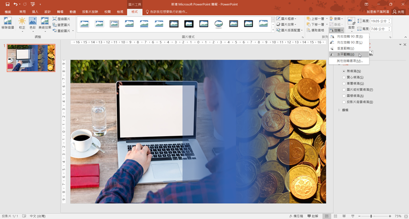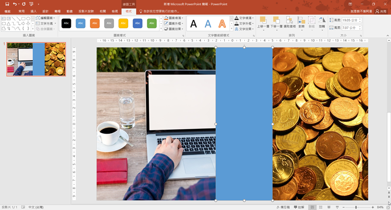 畫一個長方形放在左邊圖片上,無外框、顏色不拘(等等會調整)。