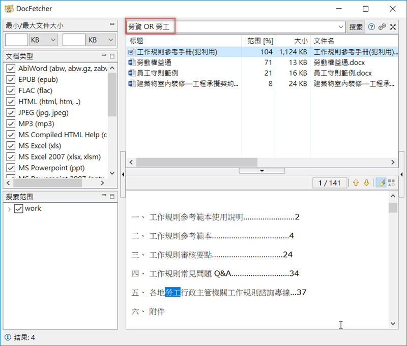 Super Finder 嗎?今天要介紹的也是類似的搜尋軟體「DocFetcher」,結合了前面兩者的特點:速度快、可搜內文,也支援多種檔案類型包括各式影音、文字、圖片檔,與多關鍵字的進階排除與過濾,而且是跨平台 Windows、Mac OSX、Linux 都有版本,還有免安裝版可放進隨身碟帶著走,蠻方便的。