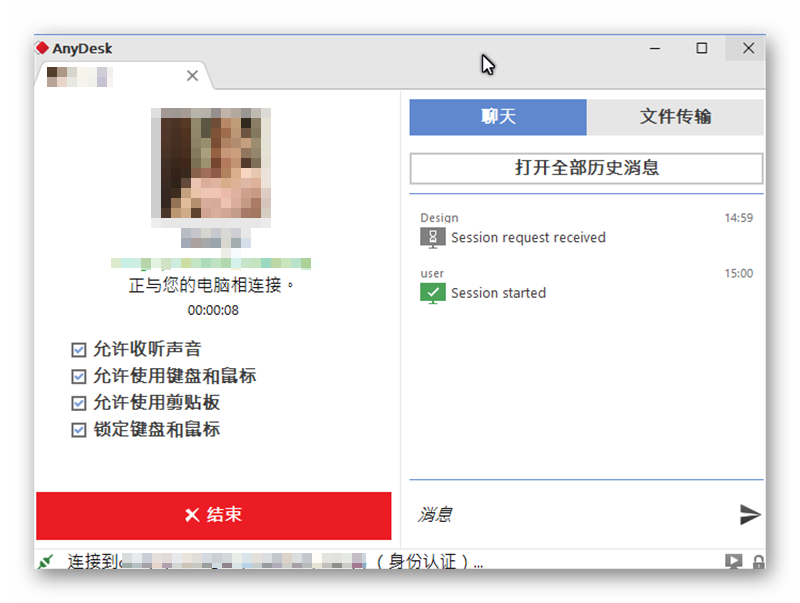 然後遠端功能就啟動了,連線中可在右邊輸入訊息聊天。