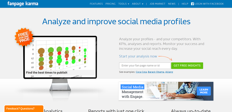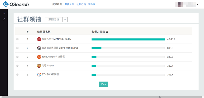 首頁一樣貼上粉絲團網址進入,要點上面的搜尋範例或社群行銷才能獲得資訊。