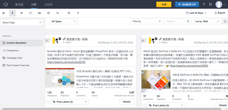 圖表分析也是一定要的,文章、粉絲、訂閱數量的狀況一目瞭然。