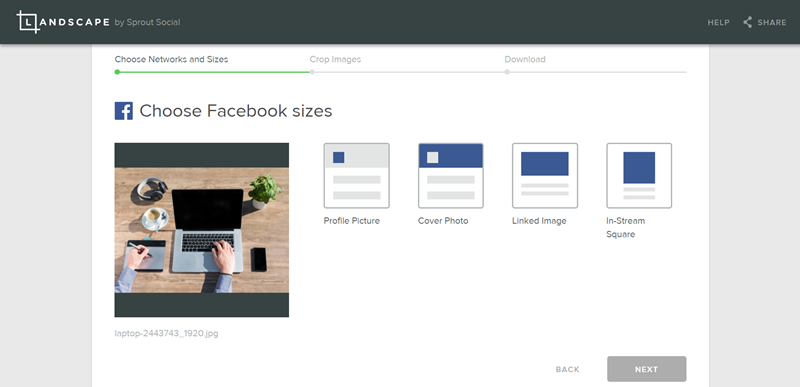 像臉書還可以選擇是用在封面還是貼文等不同尺寸,可預覽後再下載。