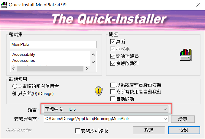 安裝前可先將語言改成繁體中文,上面的選項也可趁機將不必要的取消勾選。