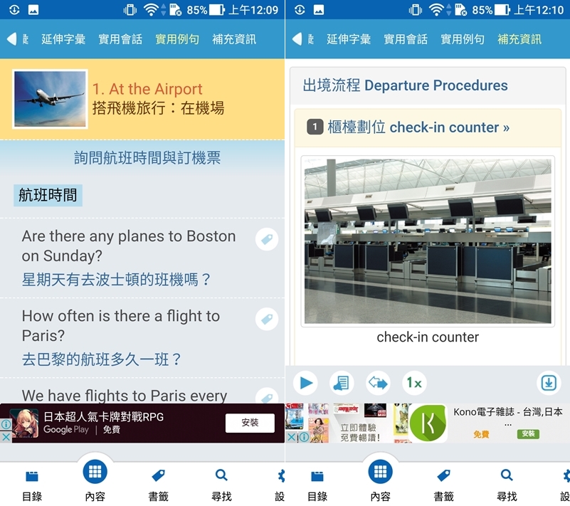 實用例句也很淺顯易懂,另外還補充了出境流程等相關資訊。