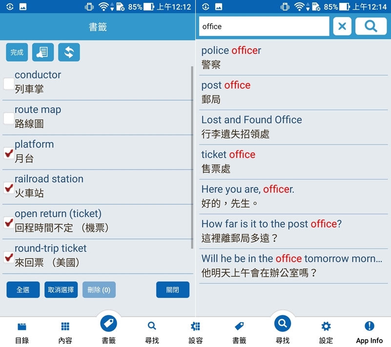 書籤部分除了跟前面一樣有重複播放的功能,編輯起來也很方便,還有搜尋區可輸入關鍵字搜尋。