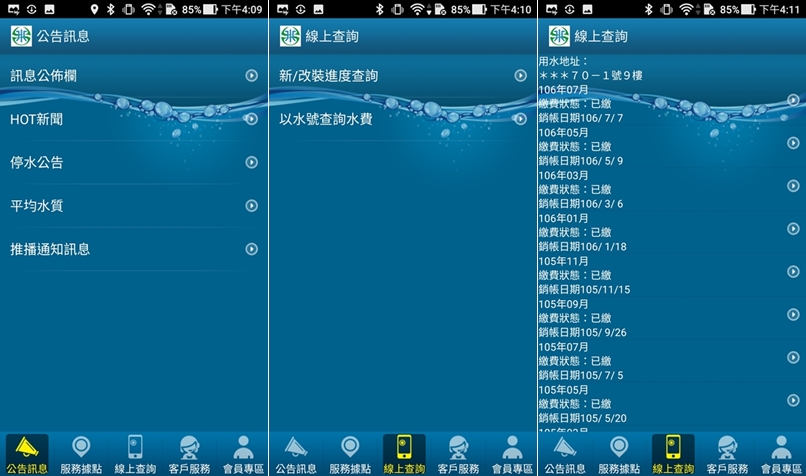 民生需求最多的除了電就是水了,這款可查看停水公告,但推播通知不夠完善,查水費帳單也只能知道有沒有繳。
