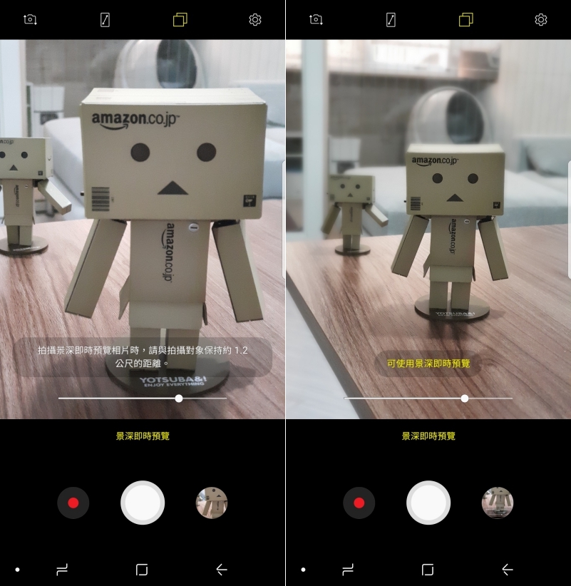 景深模式下必需和拍攝主體保持一定的距離才能啟用,雖然系統是建議 1.2 公尺,不過阿湯實際測試時,大約 50 公分也能啟用,主要還是看系統的判斷是否能使用。
