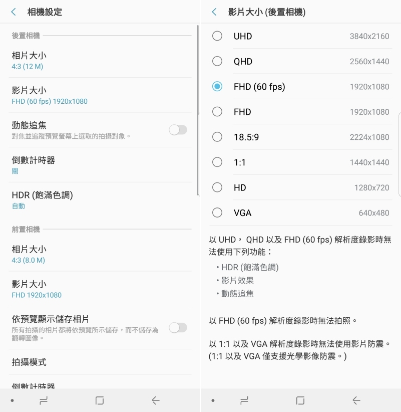 主鏡頭的部份還可以開啟動態追焦,就能自動鎖定那動來動去的不明物體(誤),像是拍攝寵物、小孩就會非常的方便,不用一直點擊螢幕重新對焦。影片錄製的部份支援 4K 錄製,不過檔案真的不小,一般阿湯都是追求流暢度,所以都會使用 FHD(60FPS),給大家參考。