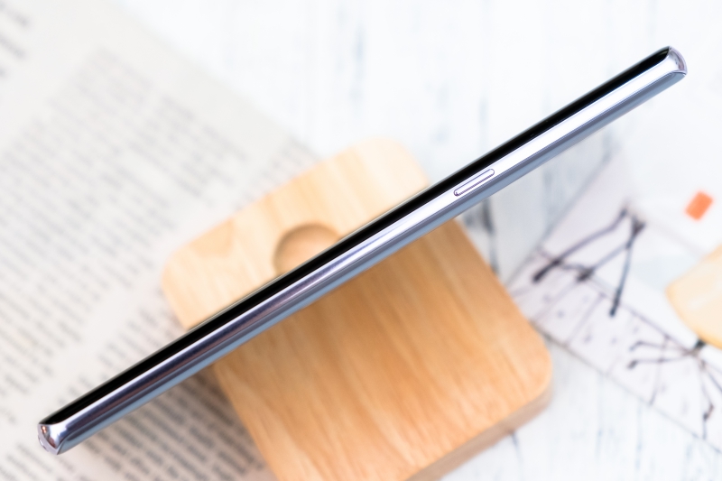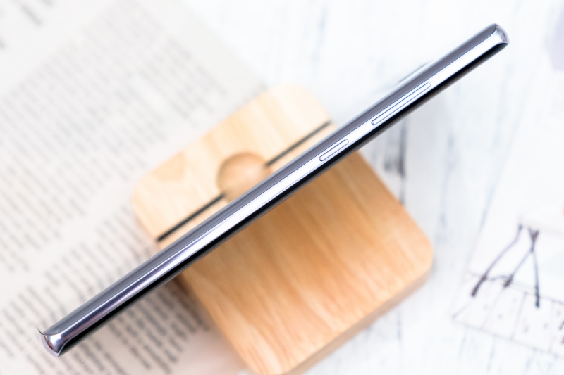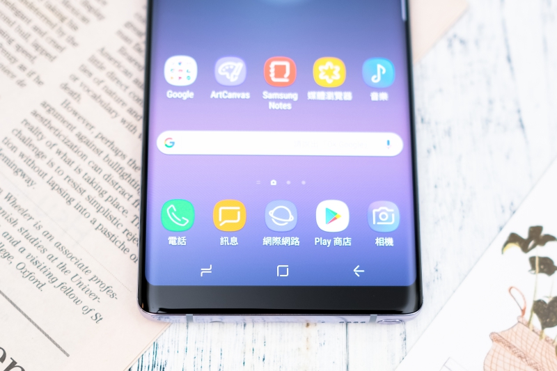 背面同樣採用玻璃材質,阿湯所拍攝的這款 Note8 顏色為星紫灰,而目前台灣上市的顏色另外還有星燦金及特別的星紗粉(女生應該會很愛),Note8 的背面也因為採用玻璃材質,所以透過不同角度來看都會有不同的感受。
