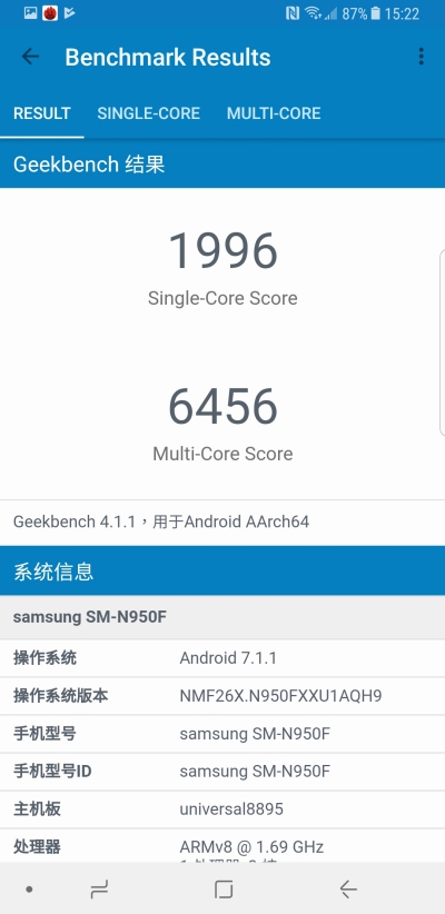 透過 Geekbench 測試,單核心獲得 1996 分、多核心 6456 分。