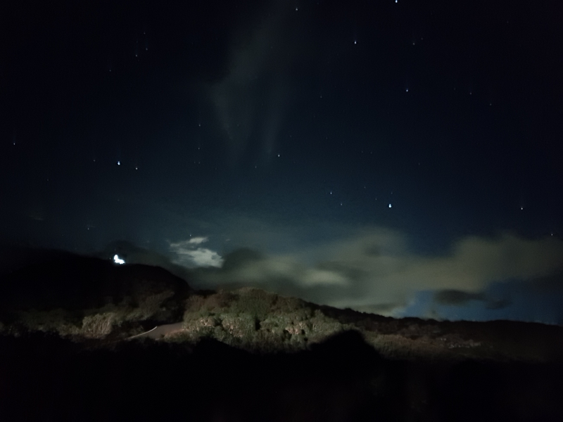 這張就是在極暗的環境下用專業模式所拍攝的,嚗光 10 秒,ISO 500,當然這是要上腳架拍攝的,本來是想去拍攝銀河,大概是太晚到了,銀河都已經不知道去哪了... 光開車來就 3 小時啊,XD。