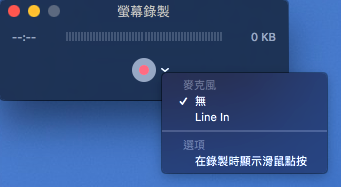 接著會出現小視窗,點開圓形按鈕旁選單可選擇麥克風來源、顯示滑鼠點按。