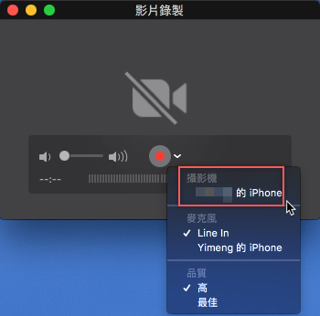 最後還可連接手機,將你的 iPhone 連到 Mac,然後開啟 QuickTime Player 點新增錄製。