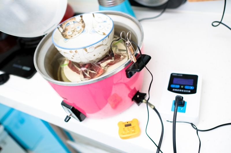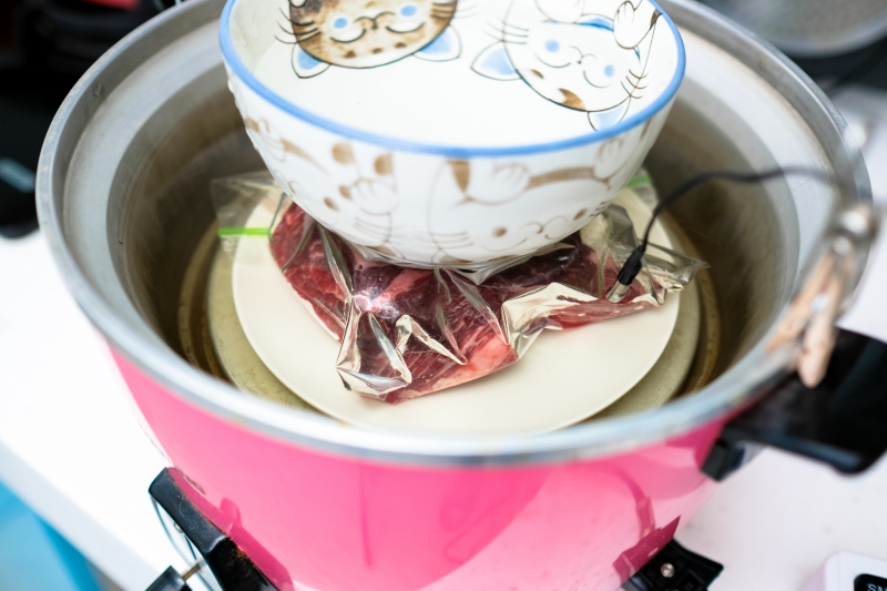 整個畫面像這樣,其實事前準備很快,設定好溫度,加入水就可以開始舒肥了。