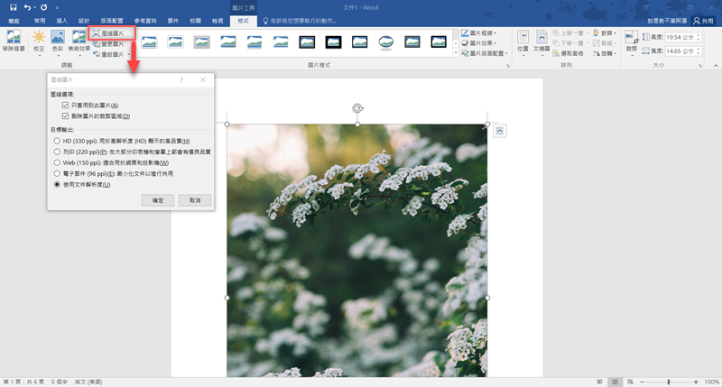 如何壓縮文件裡的圖片?