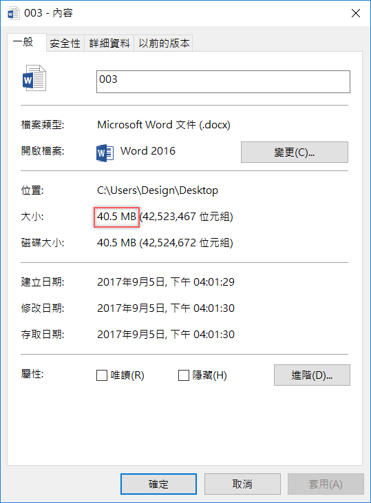 沒有壓縮過的高清圖片會你的文件變得非常大,開啟也會慢很多,但阿湯相信一定有人有這樣的需求,例如收到文件的對方需要儲存原始尺寸的圖片,就可以這樣設定。