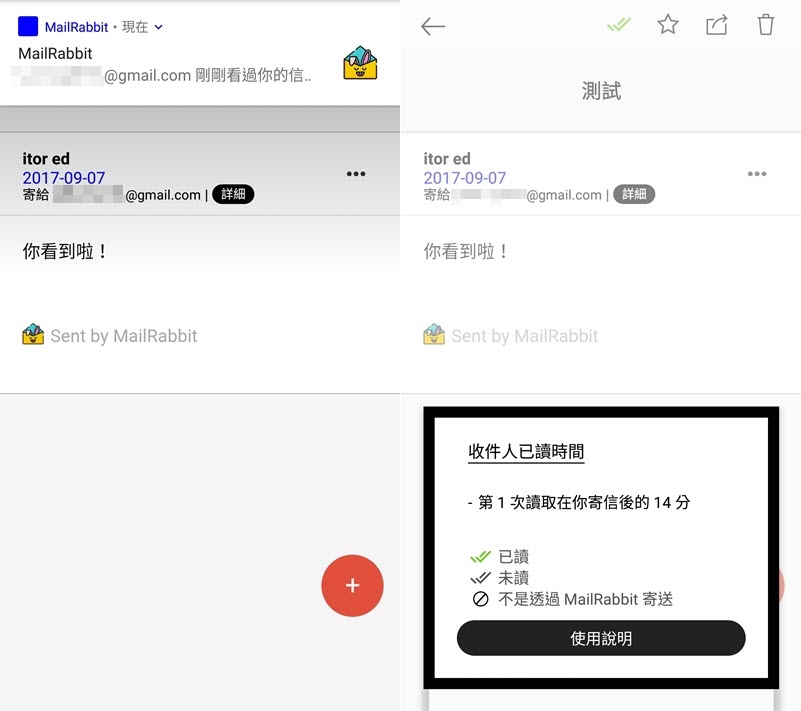 如果對方又看一次信,APP 就會再度發出通知,不過要注意的是如果信寄出去 10 秒就收到已讀,通常是對方有開啟手機的自動讀取功能,不是真正看過,可以再等等看第二次讀取的時間。