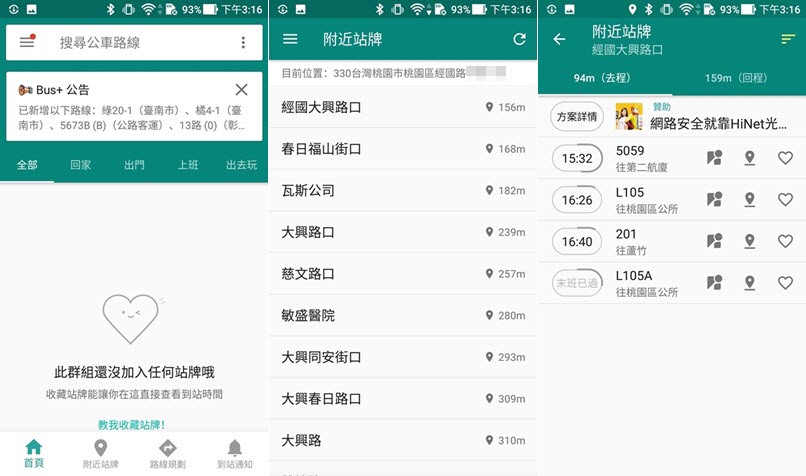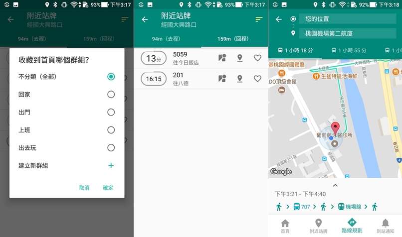將常用的站牌、路線收錄進群組,下次要用就很方便,想要去哪裡也能使用路線規劃,看坐哪個路線的公車比較快又順路。