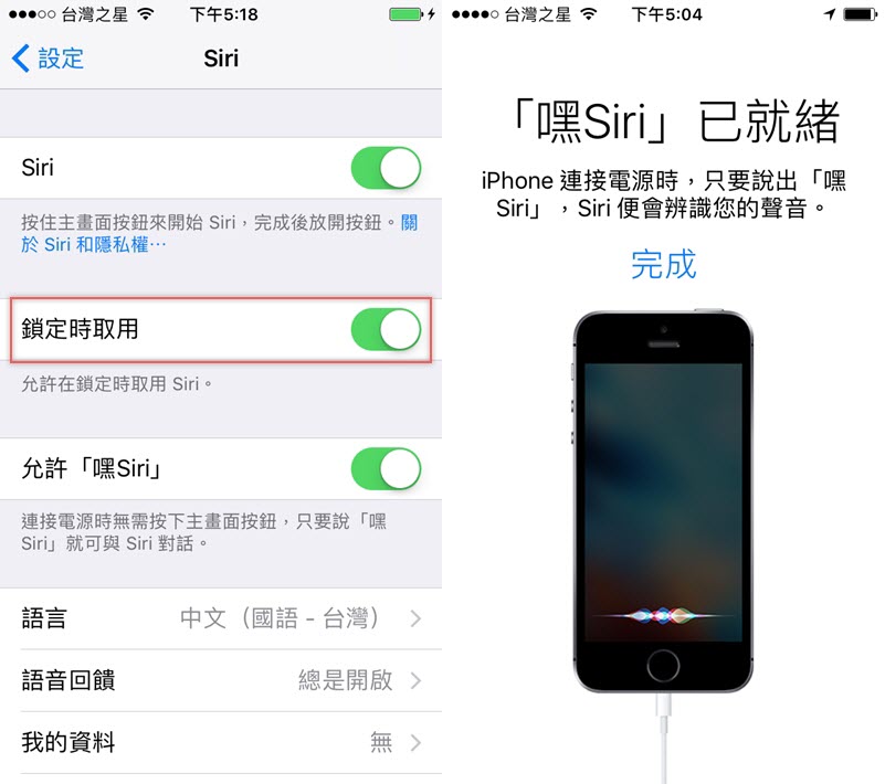 建議可以再將 Siri 的「鎖定時取用」開啟,這樣只要在手機有電的情況下就能跟 Siri 對話,不用解鎖。