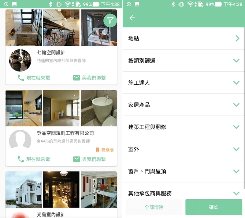 還有專屬的團隊頁面,可依需求選擇要尋找家居產品、施工達人、或專門做門窗、屋頂的類別。