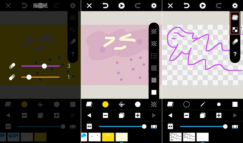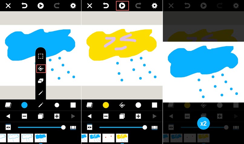 基本的選取功能和橡皮擦、油漆桶都有,隨時可點上方播放檢視,並調整變化的速度。