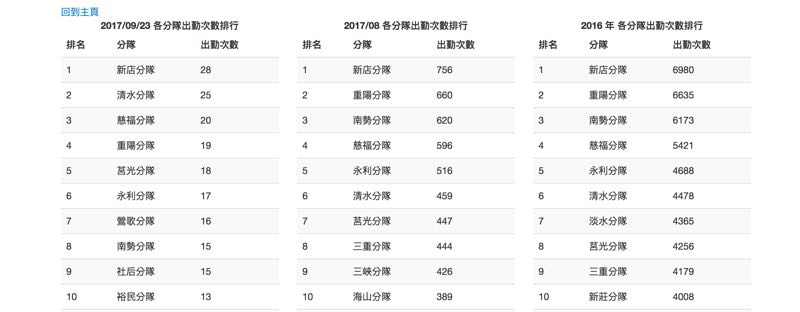 當然我們還可以利用首頁右側的篩選欄位來選擇想要關心的主要類型或是特定分隊、日期等進一步的了解。