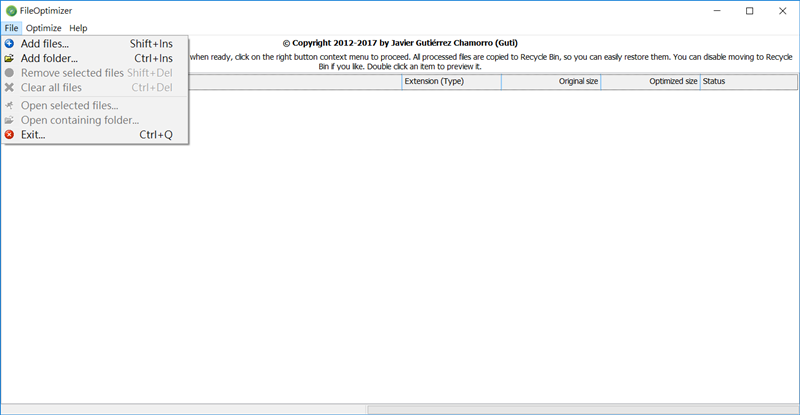 點開左上角「File」看要加入檔案還是整個資料夾,要注意的是最佳化完成後會直接產生新檔,未壓縮的原始檔則會跑到資源回收桶,如果不確定壓縮品質建議抓回來當備份。
