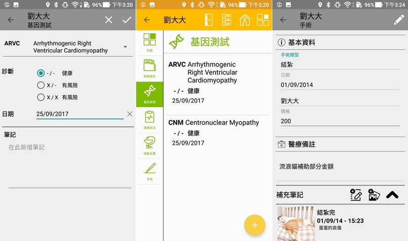 還有關乎各項疾病的基因測試結果、手術狀況的備註及筆記。