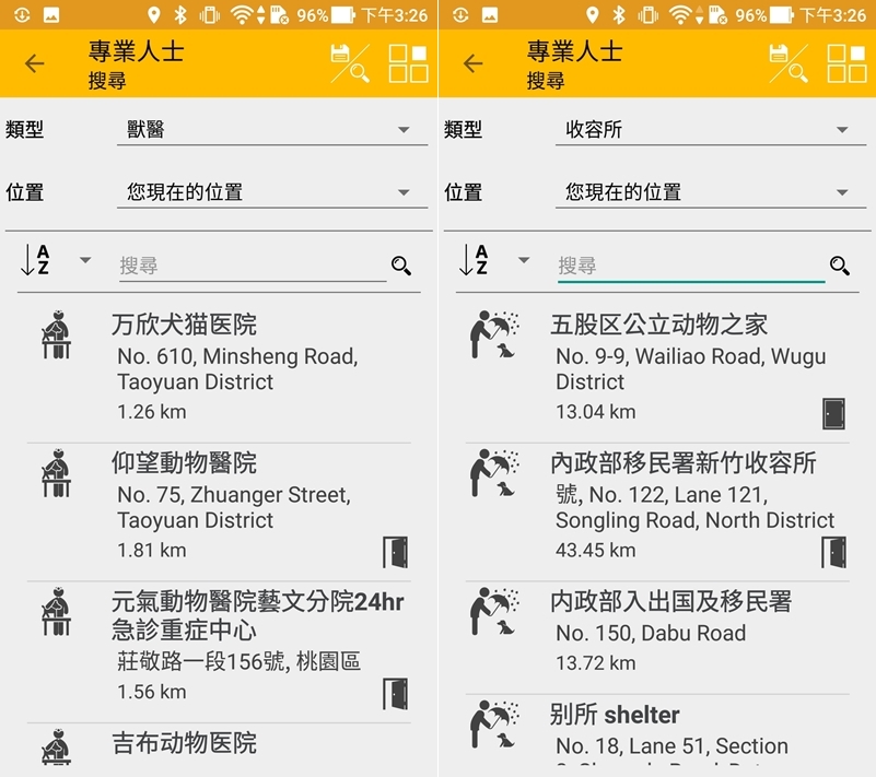 還可搜尋鄰近醫院、收容所等,如果毛小孩生病平常去的醫院沒開,或是在外地臨時要找很好用。