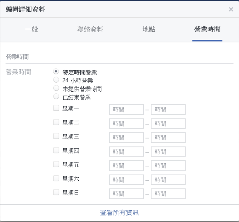 終於能編輯「營業時間」啦,這樣就不用總是被客人留言問你們開到幾點,或是不確定時間白跑一趟了。