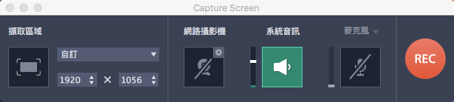 選擇擷取區域後就能開始錄製螢幕,點「REC」。