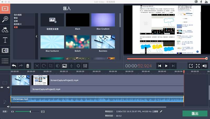 或將喜歡的背景圖片拖入,無論是商務或慶祝用影音都能找到適合的樣式。