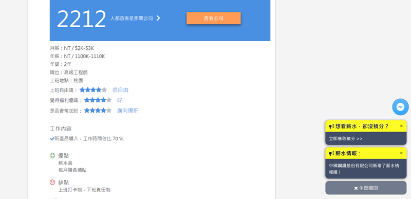 搜尋出來還蠻多筆的,且每則查看人數都有上千人,表示大家都很好奇那些工作有那麼好的待遇,不過阿湯瀏覽了一下,一些工程師、技術師、業務雖然可達到百萬年薪,但相對的壓力也重,很多都填「邁向爆肝」,沒那麼輕鬆。
