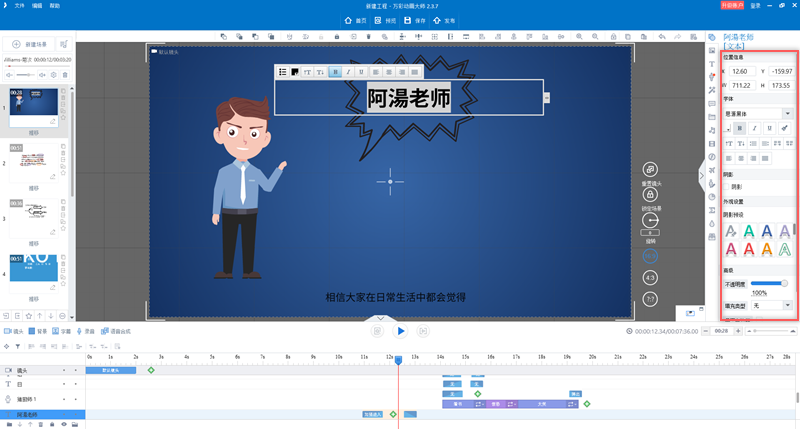 例如點這個文字框編輯,樣式與特效都可在右邊自由調整。