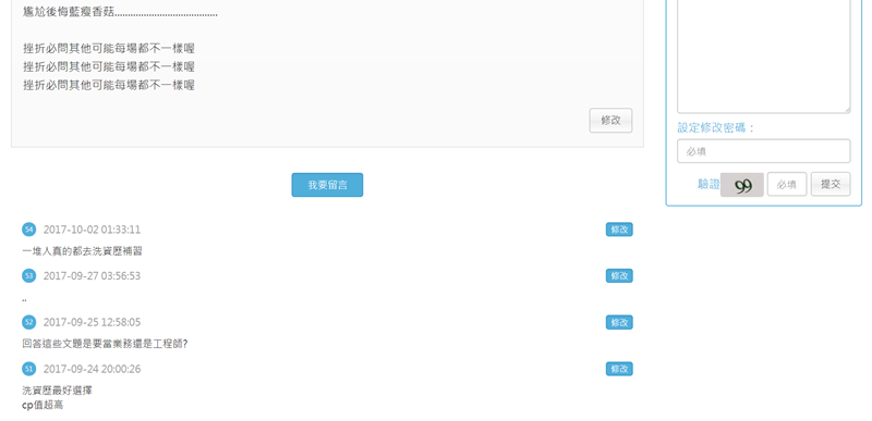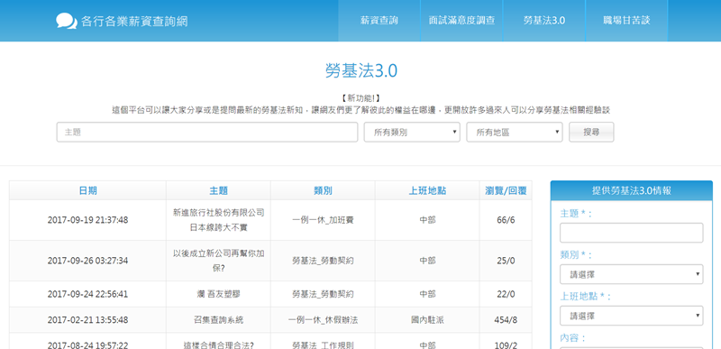 另外還有勞基法新知及職場甘苦談專區,如果大家對公司有無違法有疑問,可以發問或參考別人的狀況。