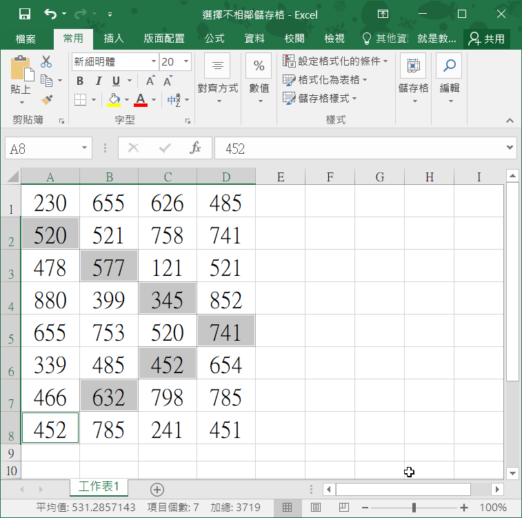 利用上述的方式,不管你要調整的儲存格相鄰還是不相鄰,都能任意選取並進行下一個動作。
