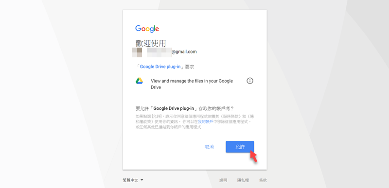 接著會自動連接登入頁面,登入 Google 帳號後點允許。