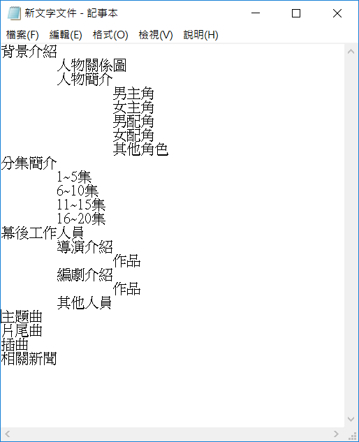 步驟很簡單,先開啟記事本輸入大綱,就跟在 Word 使用的概念一樣。