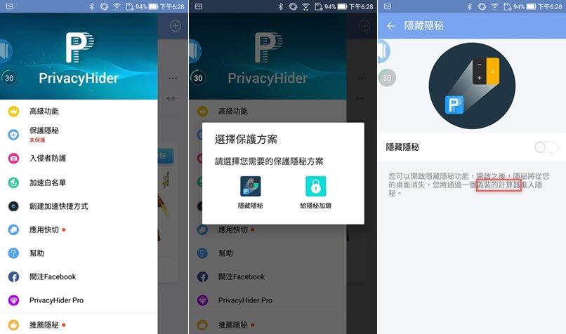還能乾脆把「隱密」這款 APP 也藏起來,選擇隱藏或加密方案,如果是隱藏它就會變身計算機。