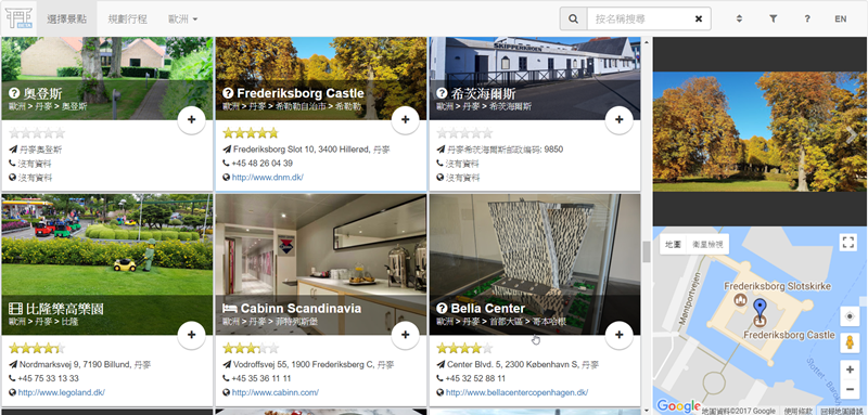 選擇你的目的地之後,網頁會列出許多景點資訊讓你參考,可直接選取你要去的地方,建議多選幾個之後要改再刪除,選好之後點上方「規劃行程」。